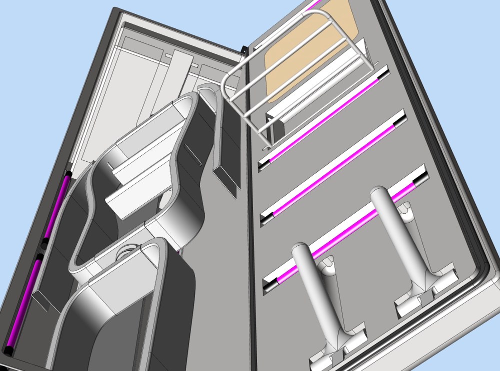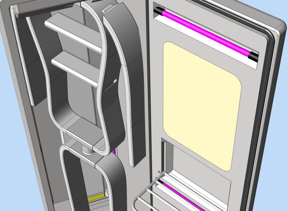 La maggior parte di analoghi dispositivi promette di sanificare, ma agisce in realtà solo in modo prevalentemente unidirezionale. READEA parte invece dal concetto di sanificazione diffusa (omidirezionale): il cuore di READEA DSS è la stampella luminosa che agisce dall’interno del capo, in sinergia con il sistema di lampade UV inserite nell’armadio.