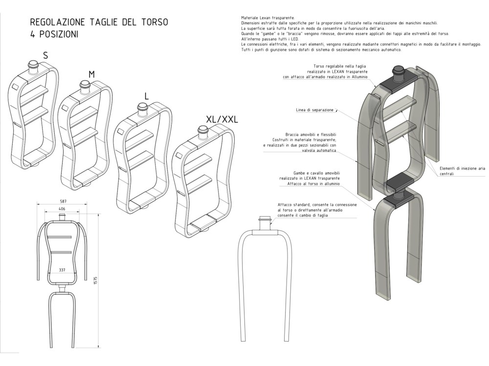 - una stampella luminosa per busto e pantaloni;